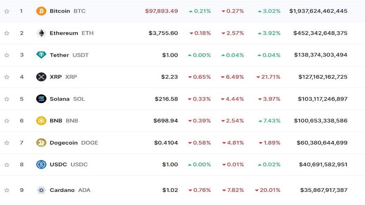 Bitcoin Drags Cryptos Market Cap Down by 2.4%