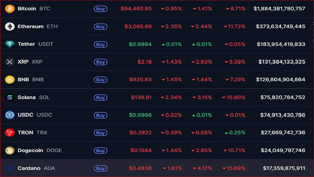 Bitcoin (BTCUSD) has fallen under $95,000 in the cryptocurrency market as investors’ red sentiment sticks to crypto assets in the absence of fresh catalysts to drive momentum.